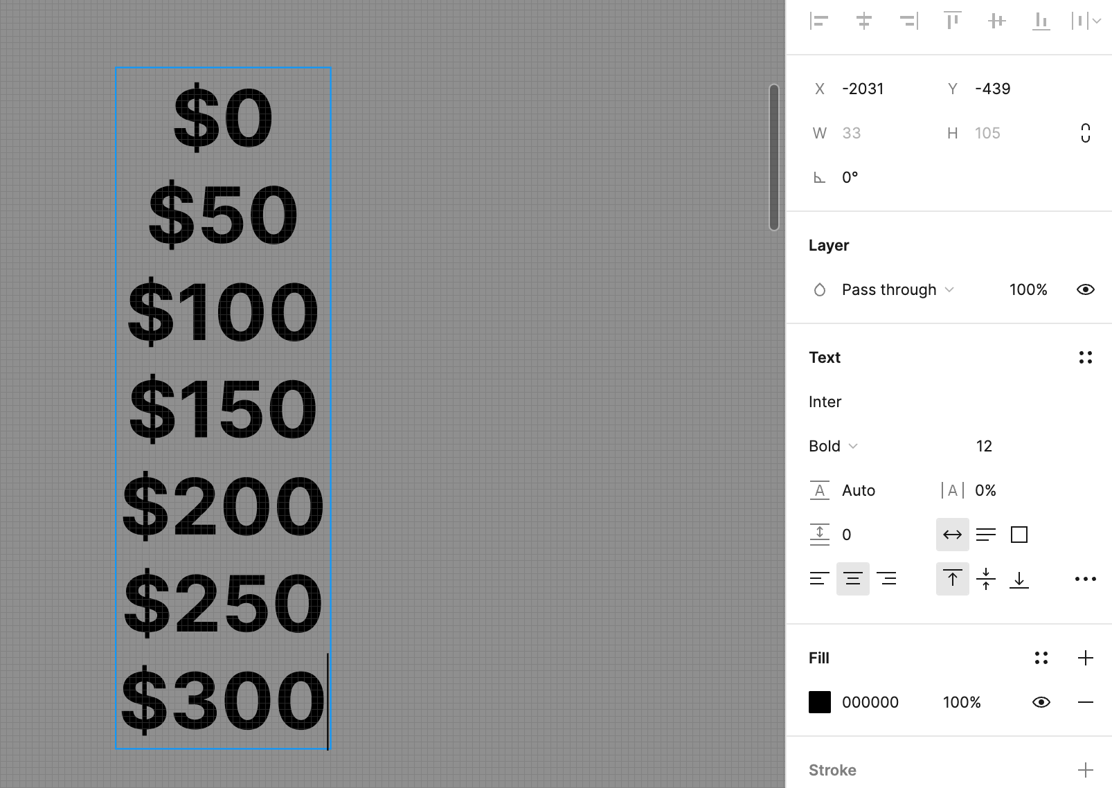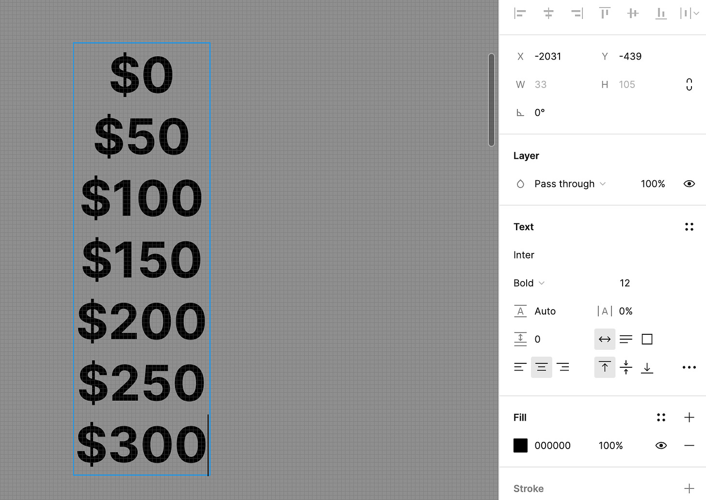 Tulis angka $0 - $300 dengan kelipatan per 50 terus select all text