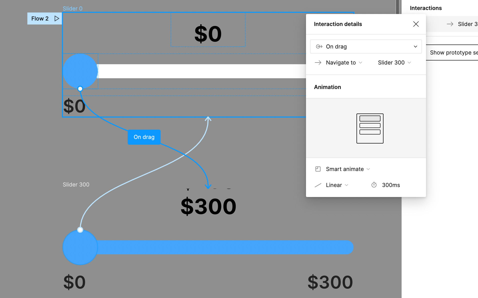 lalu buat sambungin dengan prototype dengan format on drag dan pengaturan seperti di bawah ini
