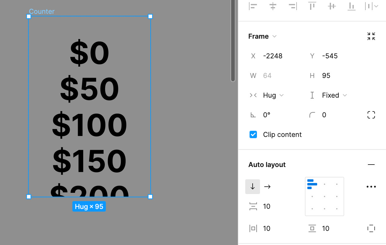 Lalu teken shift+A buat ngubah text menjadi frame autolayout dan ubah nama frame jadi counter
